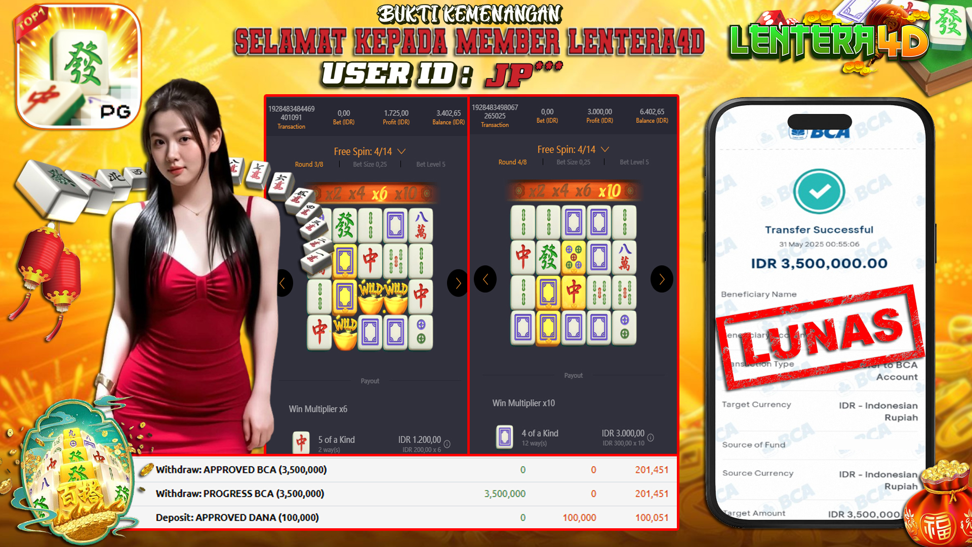 Selamat Kepada Member Yang Berhasil Mendapatkan Jackpot Dipermainan Slot PG SOFT Hari Ini, Berikut Bukti SS Jackpot Member Di Situs LENTERA4D