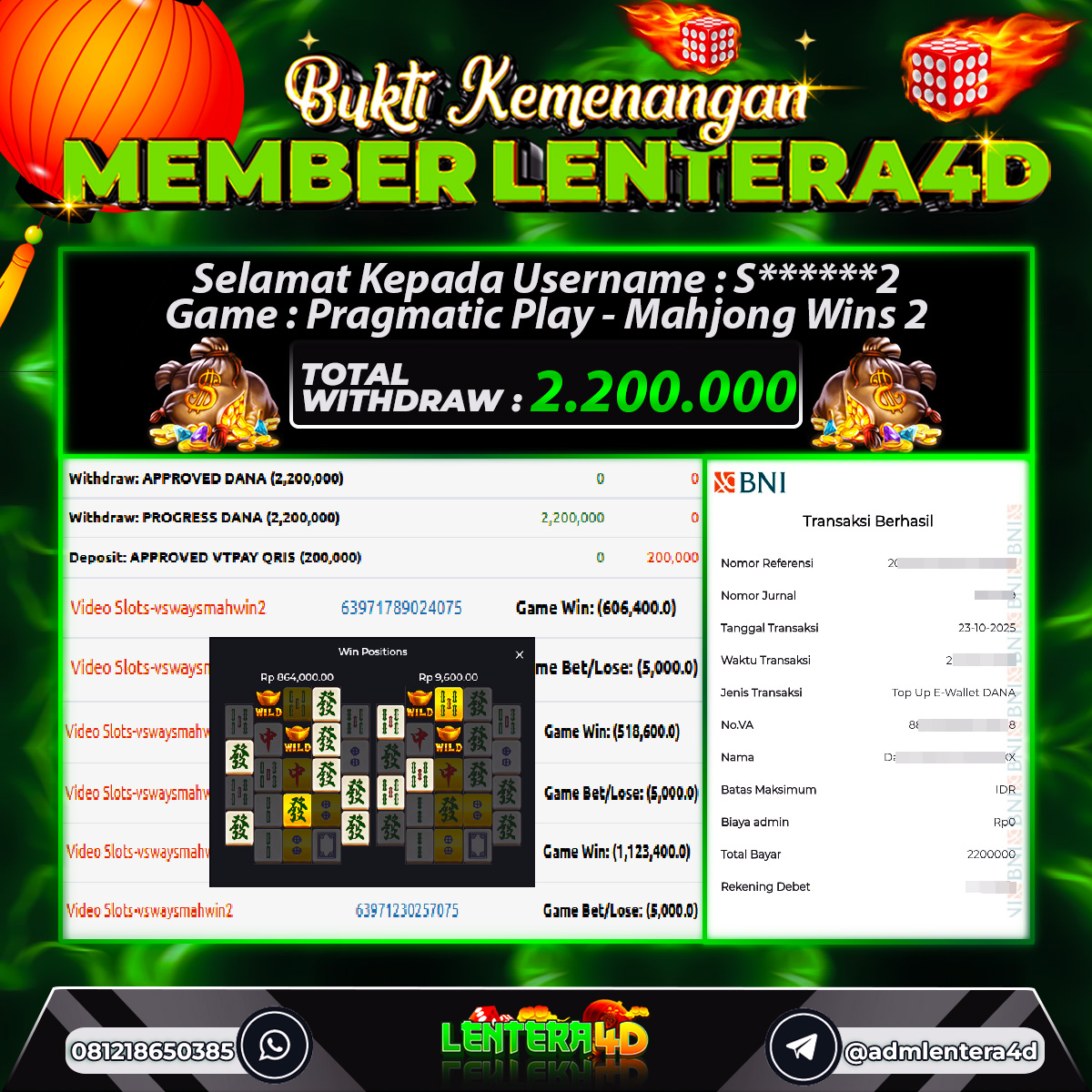 JACKPOT MAIN MAHJONG WINS 2 23 OKTOBER 2025, Jackpot Slot Gacor, Kemenangan Slot, Bukti Kemenangan Slot, Kemenangan Slot Pragmatic Play, Menang Slot online, Slot Gacor, Situs Aman Terpercaya, WD Berapapun Pasti DI Bayar Tuntas, Maxwin Slot Online.
