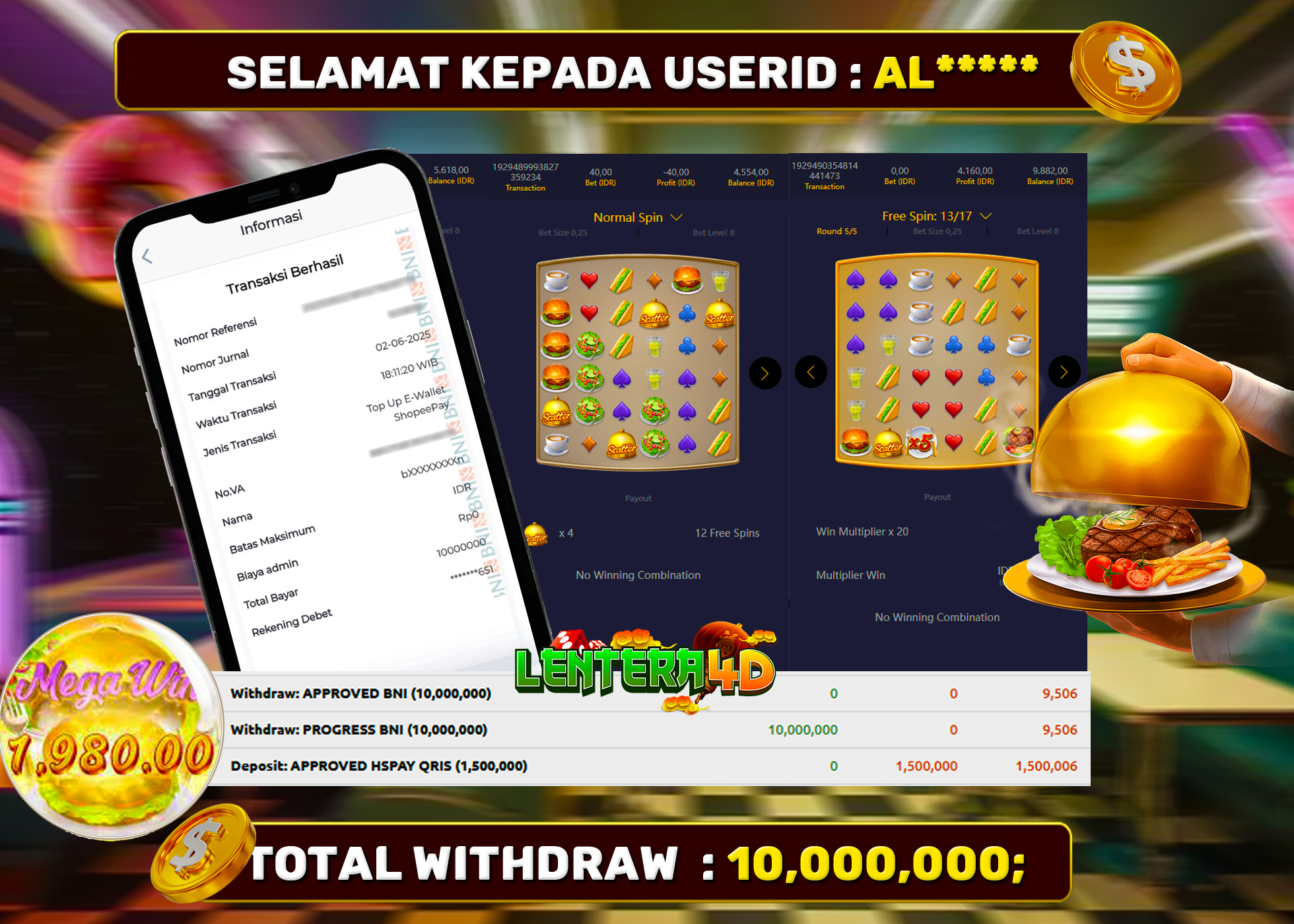 TOTAL KEMENANGAN : Rp. 10.000.000,-