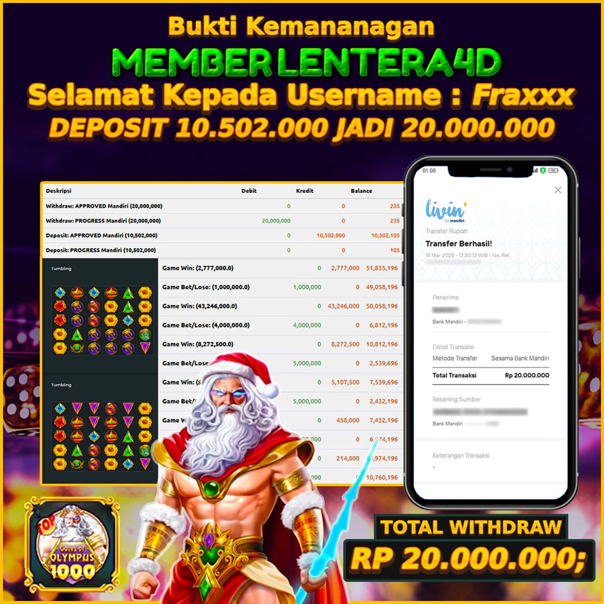 Satu lagi Bukti JP dan Pembarayan Sah Dan Dapat Dipertanggung Jawabkan, WD Berapapun Pasti Dibayar Lunas Hanya di Situs LENTERA 4D. Hati Hati Kepada Pihak Pihak Yang Mengatas namakan Pihak LENTERA4D Untuk Melakukan Penipuan.