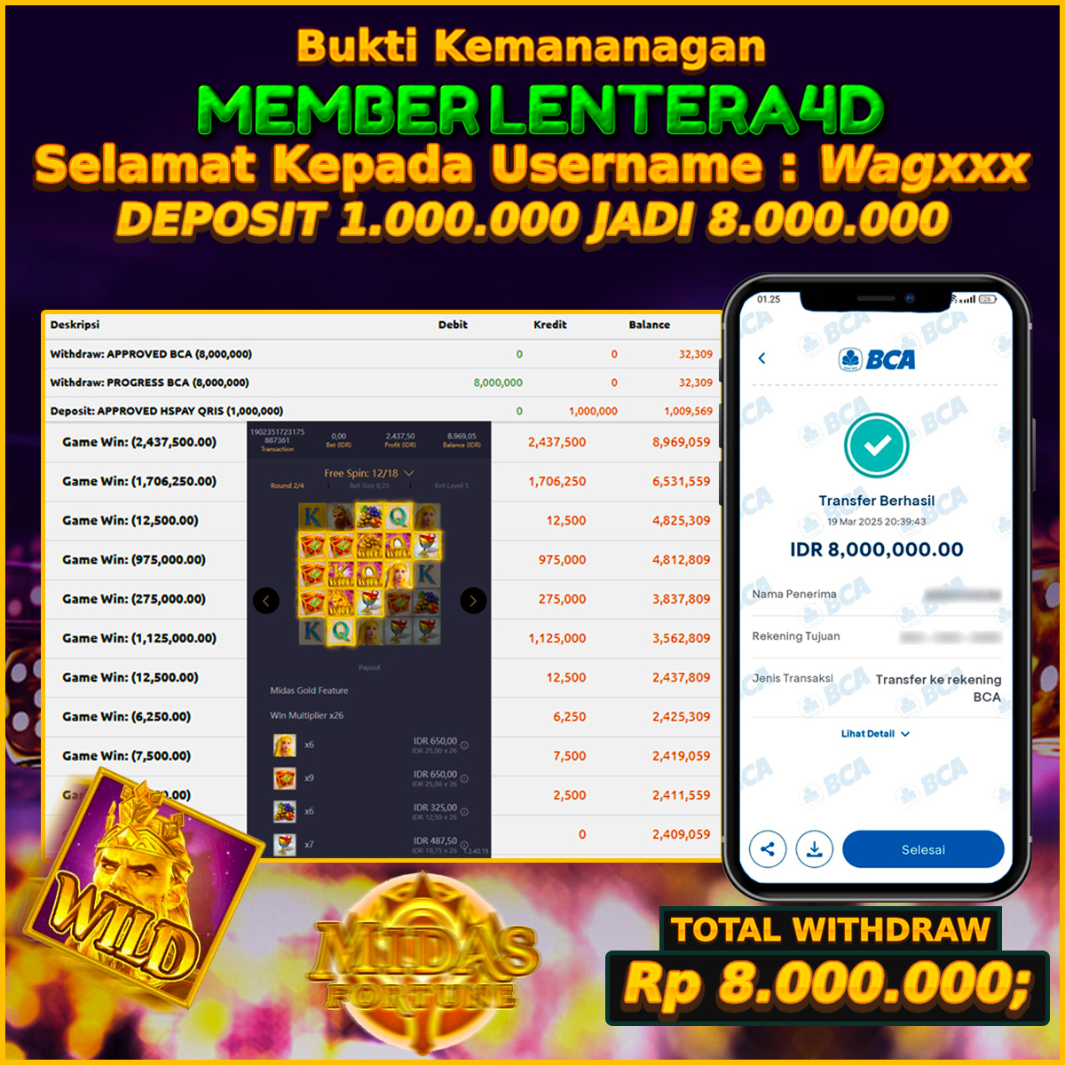 JACKPOT MAIN MIDAS FORTUNE 19 MARET 2025